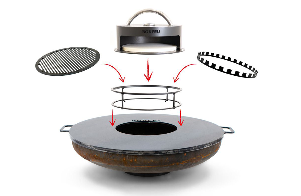 This handy BonFeu stand is easy to place on the BonBiza outdoor kitchen or the BonBowls. It is ideal to use with the BonPizza pizza oven, the Skewers Ring or the Grill for Stand. The stand falls perfectly in the centre of the BonBiza and BonBowl and ensures good stability while cooking.