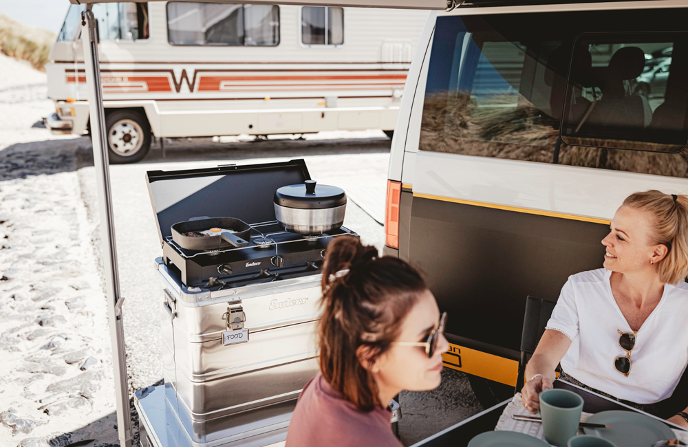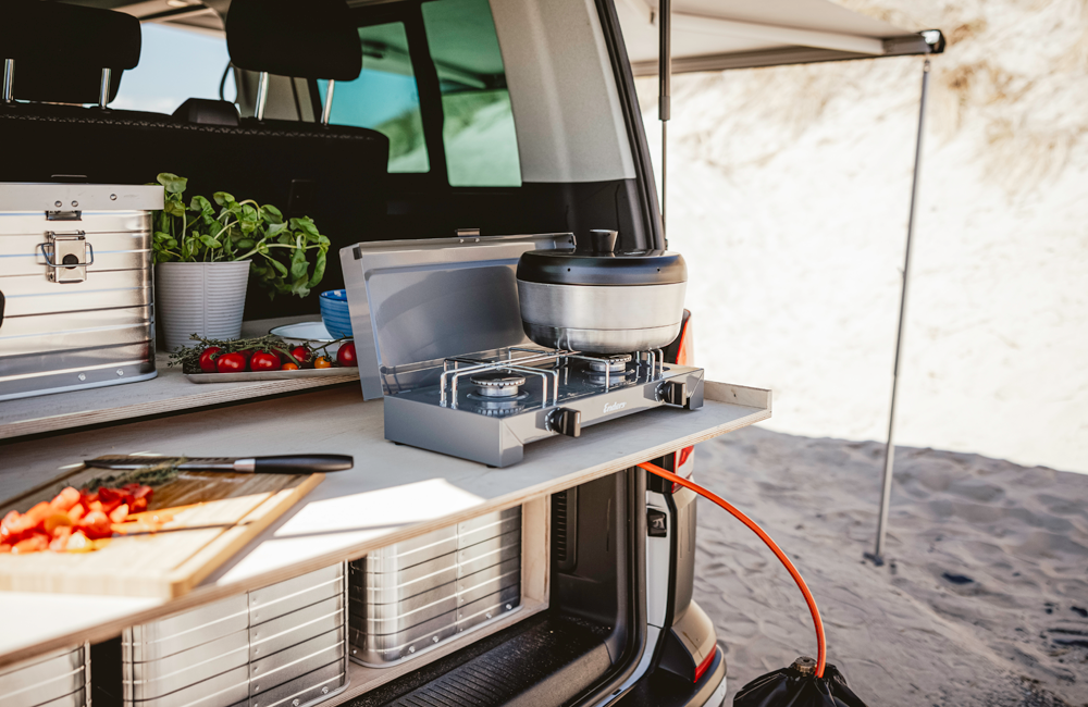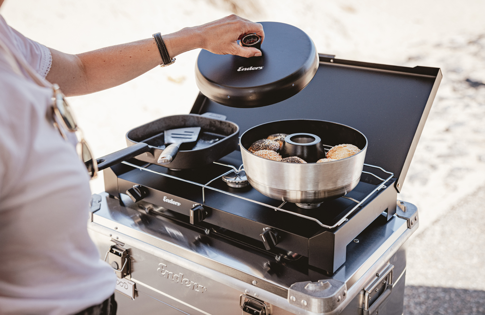How versatile! With the VAMO™, you can enjoy your favourite oven recipes under the open skies. As an extremely practical attachment for the barbecue, stove or hotplate, you can use it flexibly while camping and enjoy heat from above and below far away from civilisation. The easy-clean ceramic coating prevents food from sticking, while the integrated thermometer always shows the precise temperature. Whether it’s crisp bread, fresh rolls, light cakes or tasty casseroles – the VAMO™ is perfect for any dish that requires cooking in an oven.