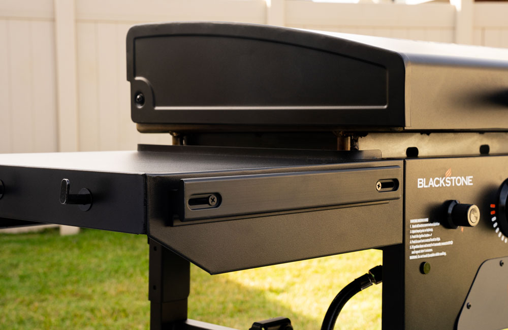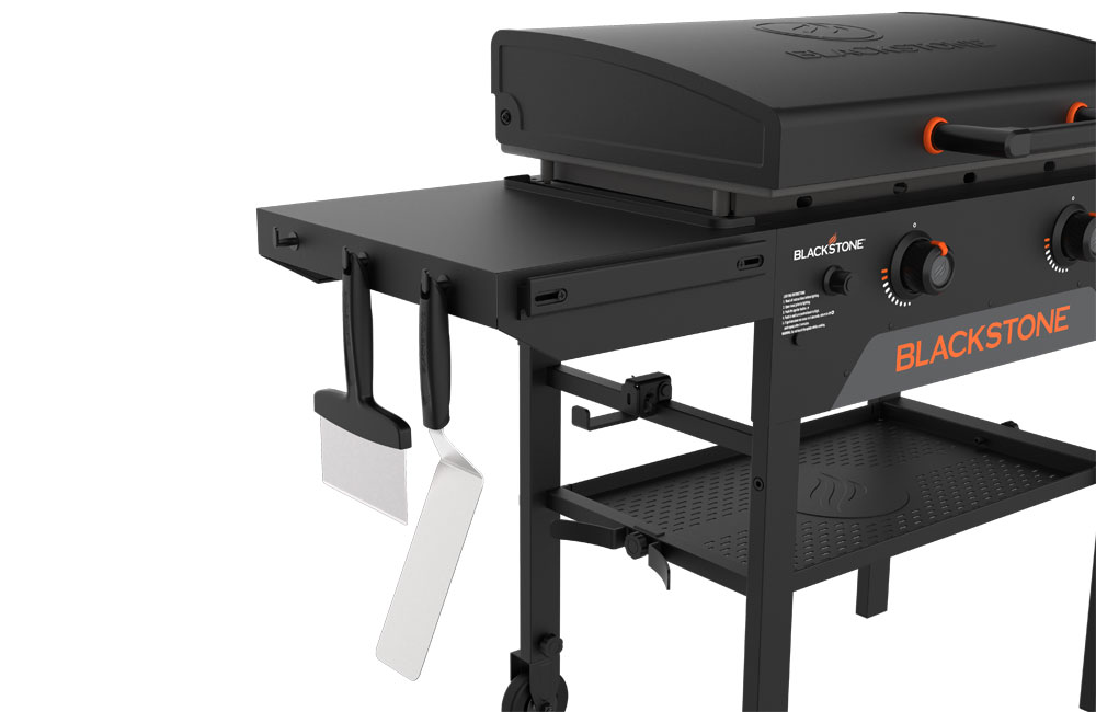 Dual side shelves with side shelf hooks: Added prep space with easy access to your cooking tools on the side shelf hooks.
