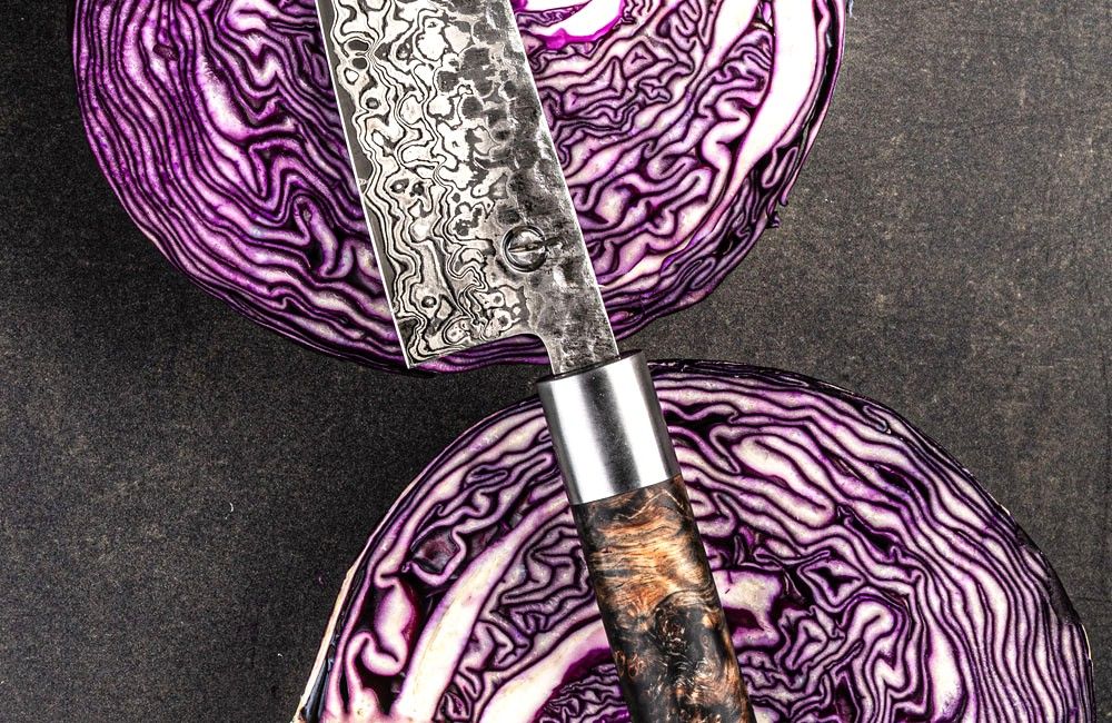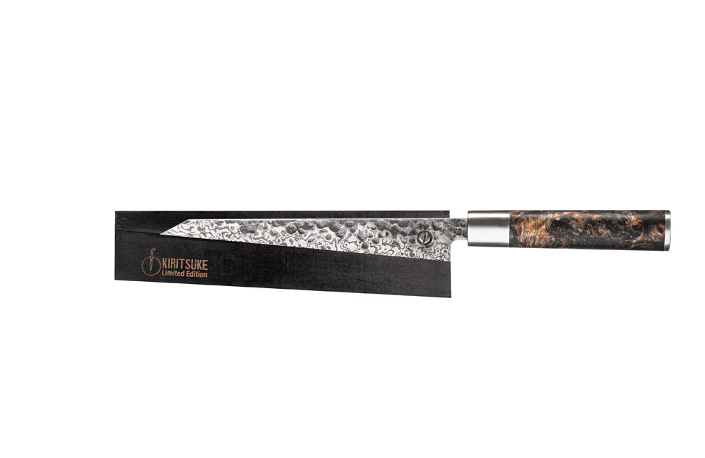 The Kiristuke knife combines the functionality of a Santoku and a chef’s knife and its unparallel sharpness ensures unprecedented precision with every cut. The knife is hand forged in no less than 67 layers of AUS10 steel and has a hardness of 61 Rockwell. The result is a very pleasant cutting experience and long-lasting sharpness.