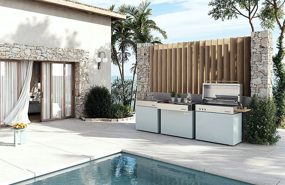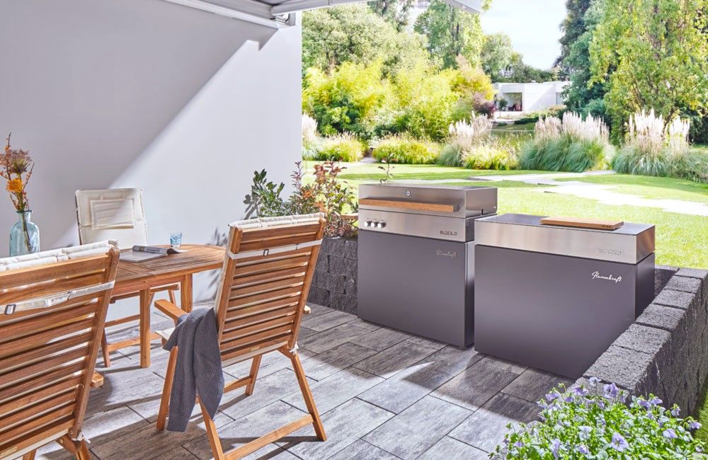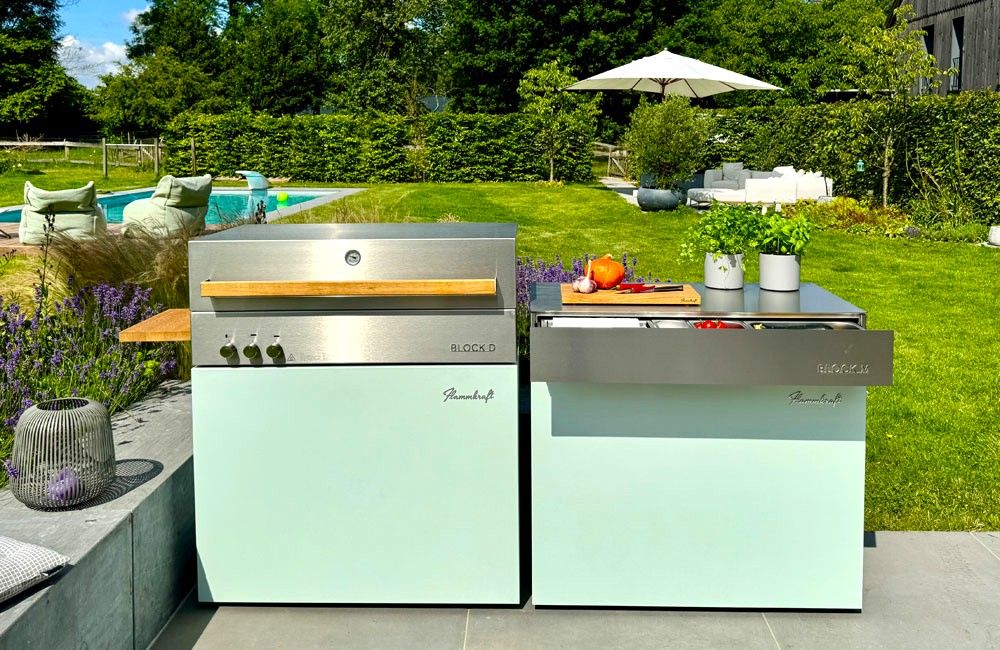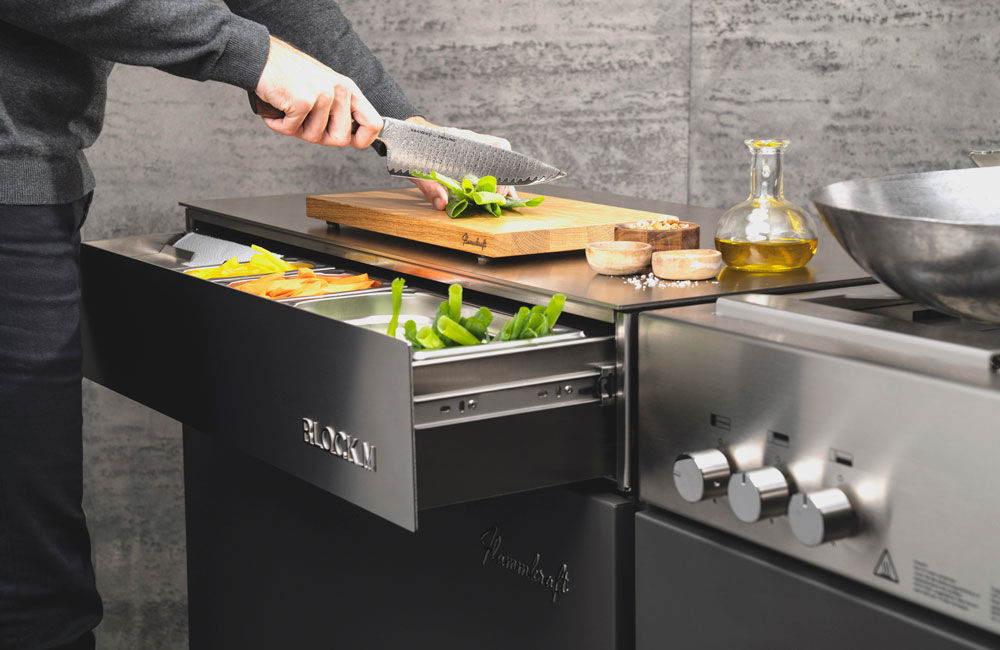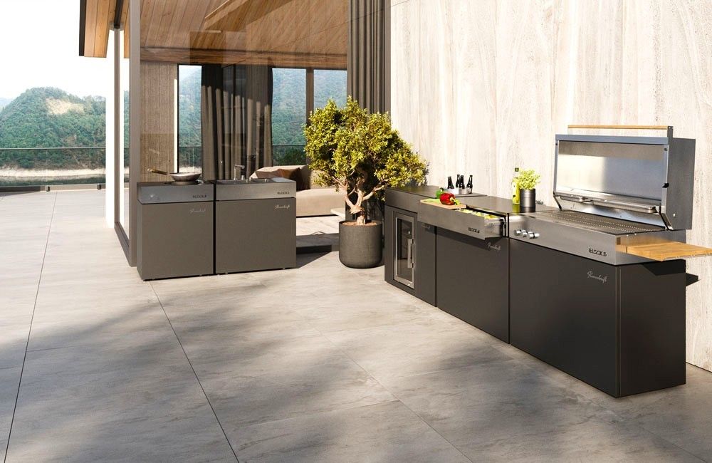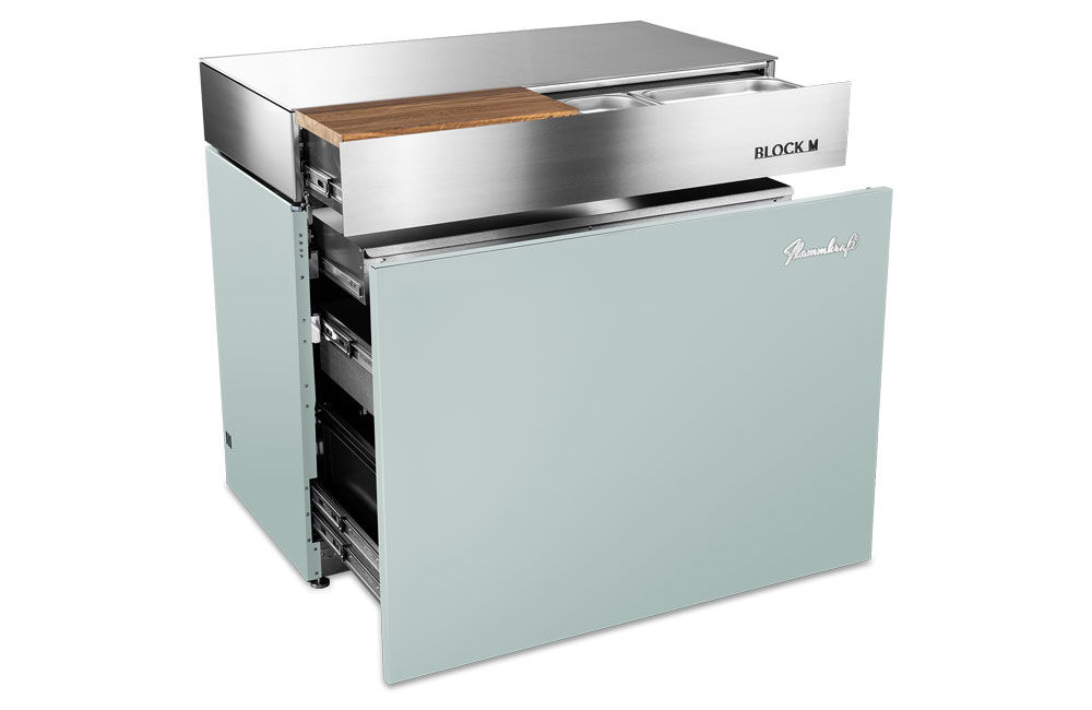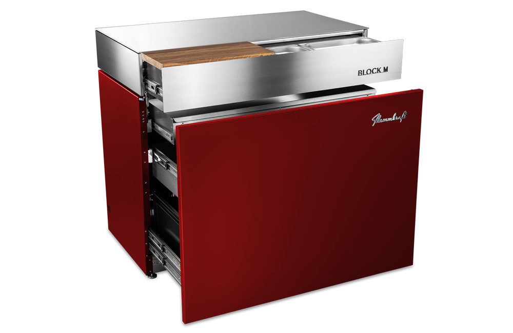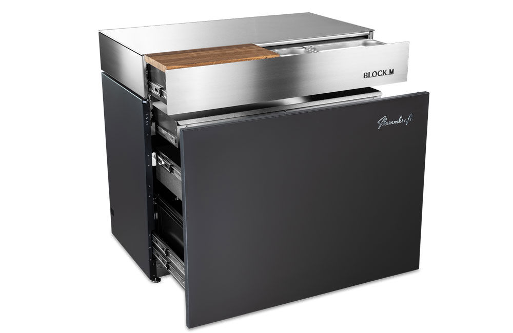 The tried and tested functions of the Block M perfectly complement the Block series of barbecues to create a high-performance outdoor kitchen ensemble. The clear and unambiguous design is continued seamlessly, the colour concept with seven deep matt colours is fully available.